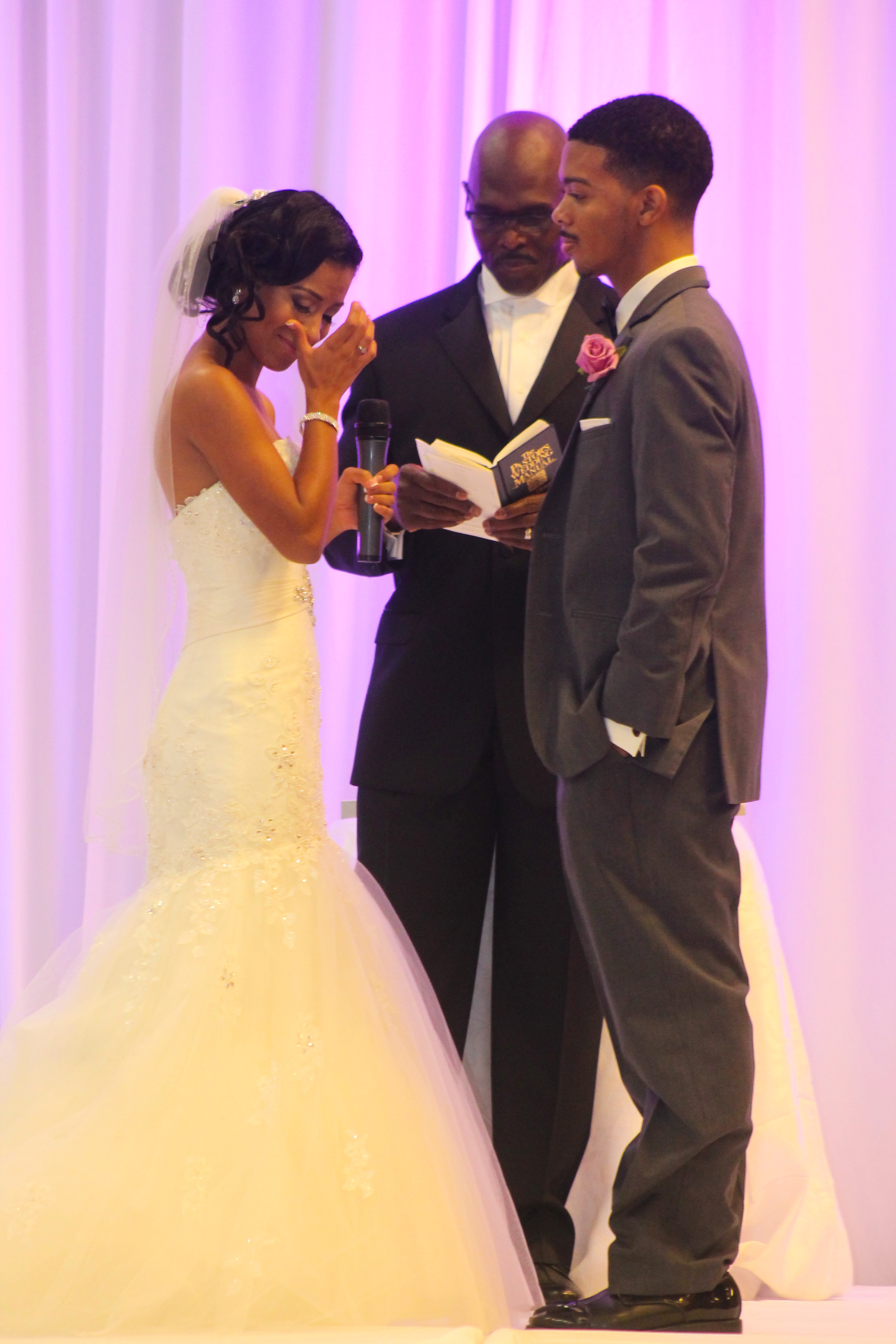 Walking down the aisle I tried not to loose it. I kept telling myself “please don’t do an ugly cry, please don’t do an ugly cry,” the whole entire time walking down the aisle. When those doors open and you see the man God has destined you to be with, you’re filled with so many emotions that you just want to scream, shout, and cry out “Thank you God!” I cried, but I tried to take deep breaths so I wouldn’t ruin my makeup and have to look at pictures of me doing the ugly cry for many years to come lol. My husband said when the doors opened and he saw me for the first time. I took his breath away…aww. He said he almost broke out in the ugliest man cry of all time. I could tell I took his breath away because I could see him taking deep breaths and trying not to loose it. I kind of wish we both would have lost it lol; those would’ve been some awesome pics huh? Ha!